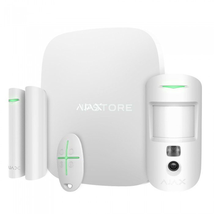 Ajax StarterKit Cam Plus HDR White – інноваційний комплект охоронної сигналізації, призначений для захисту квартири, будинку, офісу або комерційного об'єкта. Унікальне поєднання фотоверифікації тривог, багатоканального підключення (Wi-Fi, 2G/3G/4G, Ethernet), швидкої реакції та простоти у використанні робить цю систему одним із найкращих рішень на ринку сучасної безпеки.