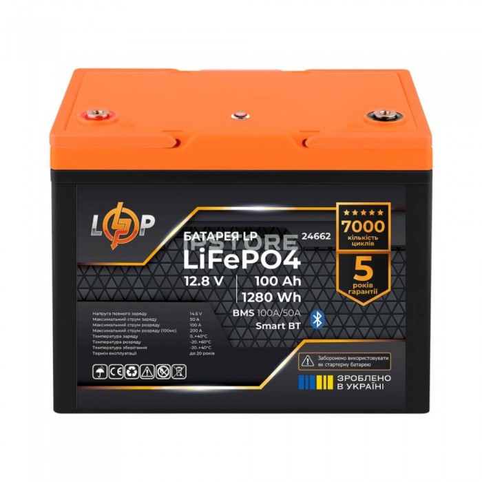 Аккумулятор Logicpower LP LiFePO4 12,8V - 100 Ah (1280Wh) (BMS 100A/50А) пластик Smart BT