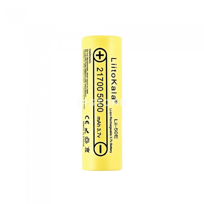 Аккумулятор LiitoKala Lii-50E 5000mAh (21700) – литий-ионный аккумулятор формата 21700 с повышенной емкостью 5000 мА·ч и химической системой INR (NMC: литий-никель-марганец-кобальт). Такое соединение компонентов обеспечивает высокую плотность энергии, стабильную работу под нагрузкой и низкий уровень нагрева. Элемент имеет плоский плюсовый контакт и не оснащен встроенной защитой, что делает его универсальным для использования в сборках с контролем BMS.