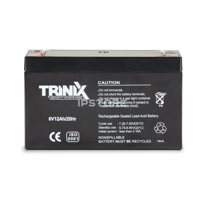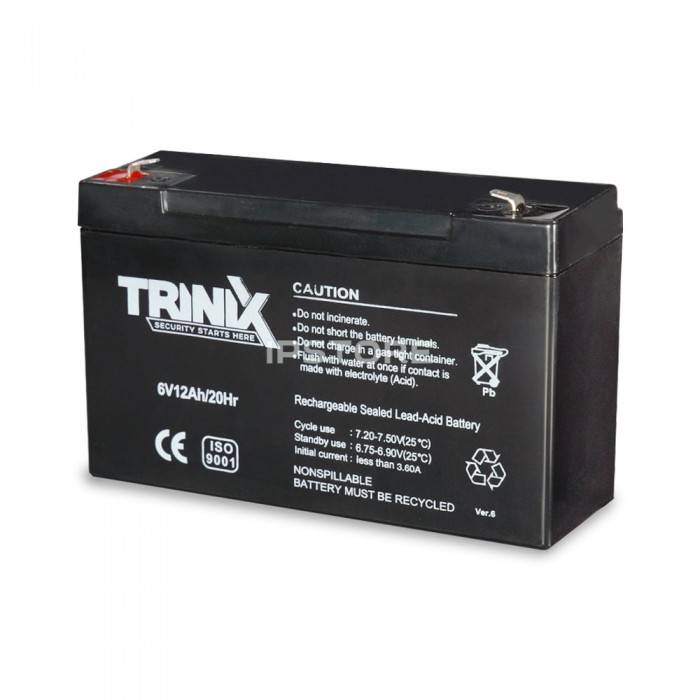 Аккумуляторная батарея Trinix 6V12Ah/20Hr AGM емкостью 12 Ач , с выходным напряжением 6 В , тип – AGM свинцово-кислотная.