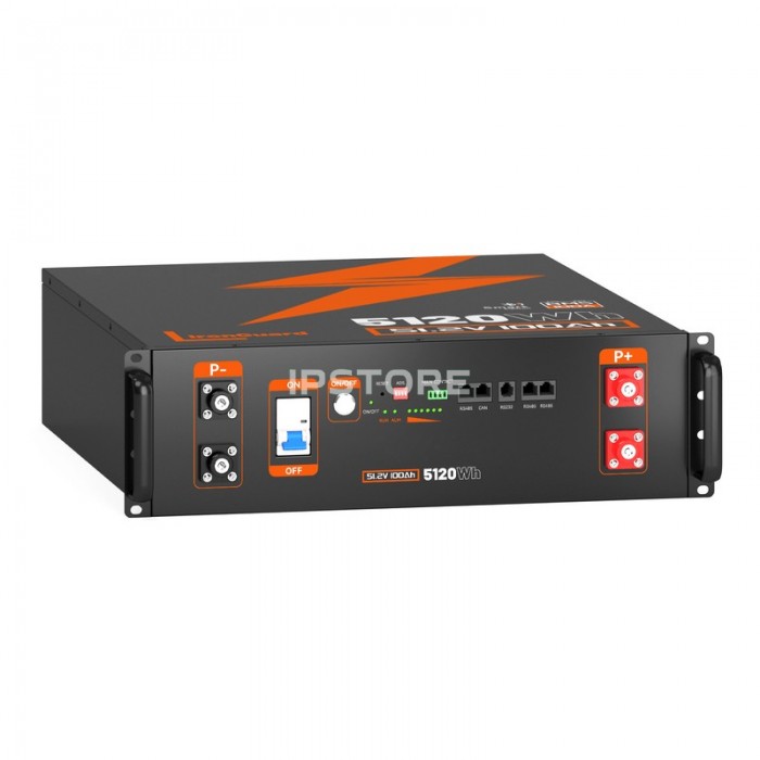 Модульний LiFePO4 акумулятор HS48V100AH10 51.2 В, 100 А·год у компактному корпусі 3U забезпечує 5.12 кВт·год енергії. Призначений для домашнього та промислового використання: систем безперебійного живлення (UPS), сонячних / гібридних інверторів та серверних стійок. Підтримує паралельне підключення до 16 модулів для масштабування системи до 81.92 кВт·год енергії. Сумісний з більшістю представлених на ринку інверторів, оснащений інтерфейсами RS485, RS232 та CAN для інтеграції до інтелектуальних енергосистем.