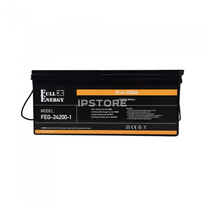 Акумулятор Full Energy FEG-24200-1 - це сучасна літій-залізо-фосфатна батарея LiFePO4 25.6V 200Ah з енергоємністю 5120 Wh, призначена для інверторів, солнечних електростанцій, систем резервного живлення та накопичення ен...
