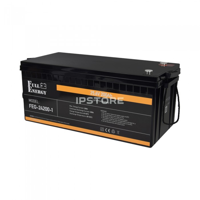 Акумулятор Full Energy FEG-24200-1 - це сучасна літій-залізо-фосфатна батарея LiFePO4 25.6V 200Ah з енергоємністю 5120 Wh, призначена для інверторів, солнечних електростанцій, систем резервного живлення та накопичення енергії.