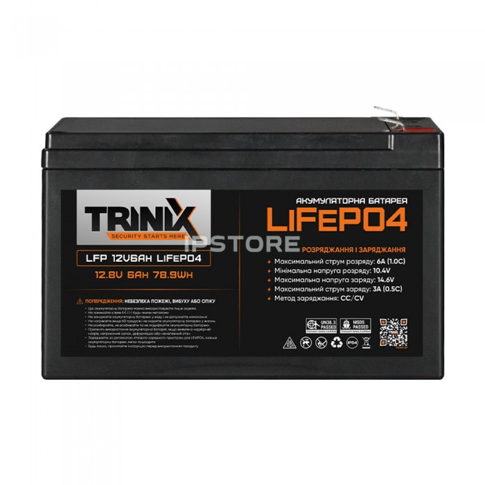 Акумуляторна батарея Trinix LFP 12V6Ah LiFePO4 ємністю 6 А·год, з вихідною напругою 12.8 В, тип – літій-залізо-фосфатна (LiFePO4), кількість циклів: > 4000.