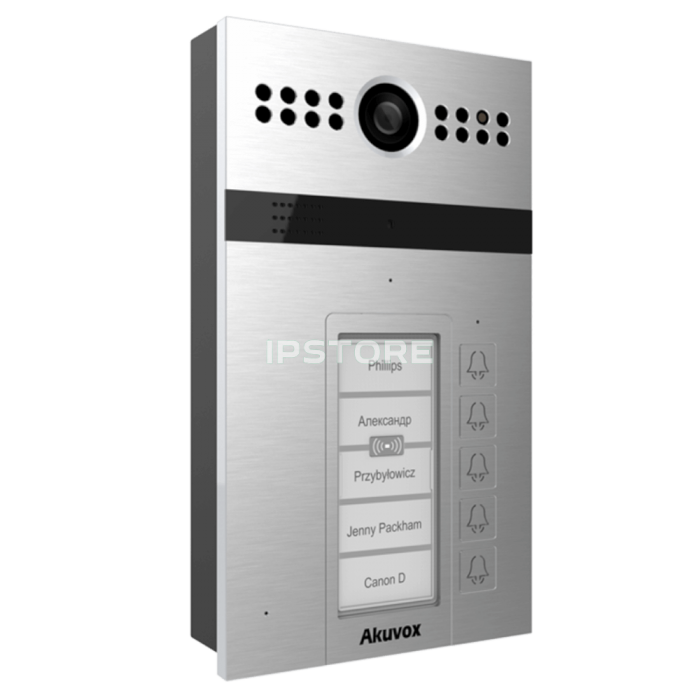 Якщо для реалізації вашого проекту безпеки необхідна надійна п'ятиабонентна панель виклику, модель R26B від бренду Akuvox має всі шанси стати вашим ідеальним вибором. Гаджет може похвалитися широким сучасним функціоналом та стильним дизайном, який чудово впишеться в екстер'єр будь-якого сучасного об'єкта. На передній панелі виділено місце під імена п'яти абонентів, а також окремі кнопки для виклику кожного з них. Відмінно підійде для обладнання великого заміського будинку на кілька сімей, готельного комплексу, офісного простору, багатоквартирної будівлі та ін.