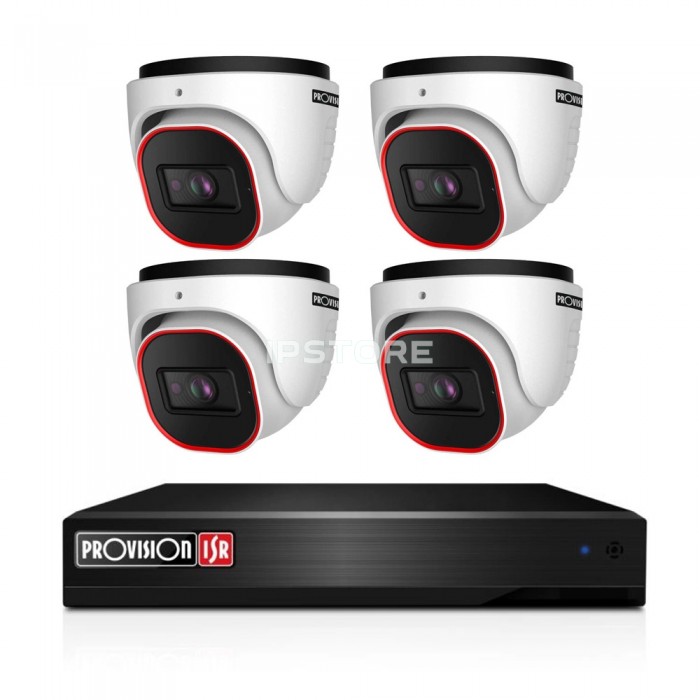 До складу комплекту входять: 4 купольні камери Provision-ISR DI-320AB-28 (2.8 мм) з роздільною здатністю 2 Мп