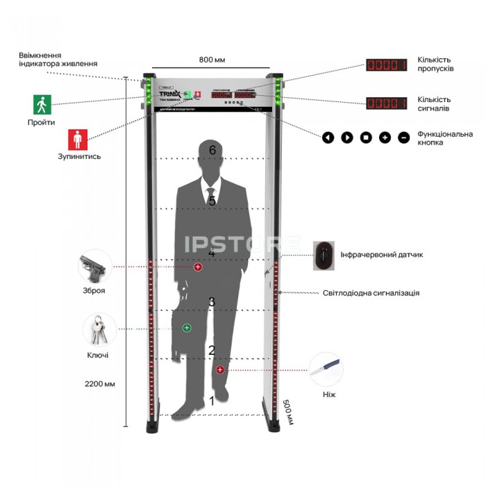 Арочний металодетектор Trinix TRX-500AMD, 18 зон детекції