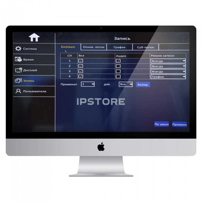 - для компрессии видео используется передовой стандарт сжатия - H.264 - обеспечивающий оптимальное качество изображения при сравнительно небольшом объеме архива
