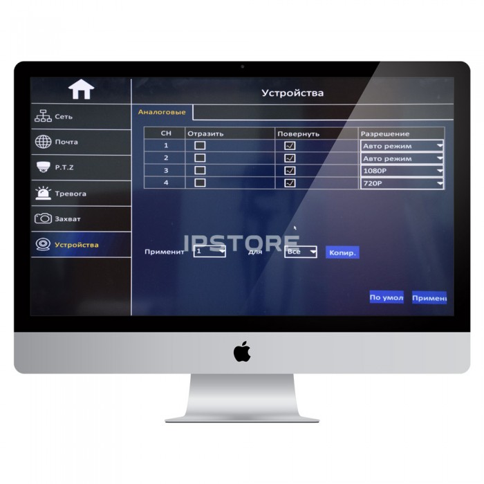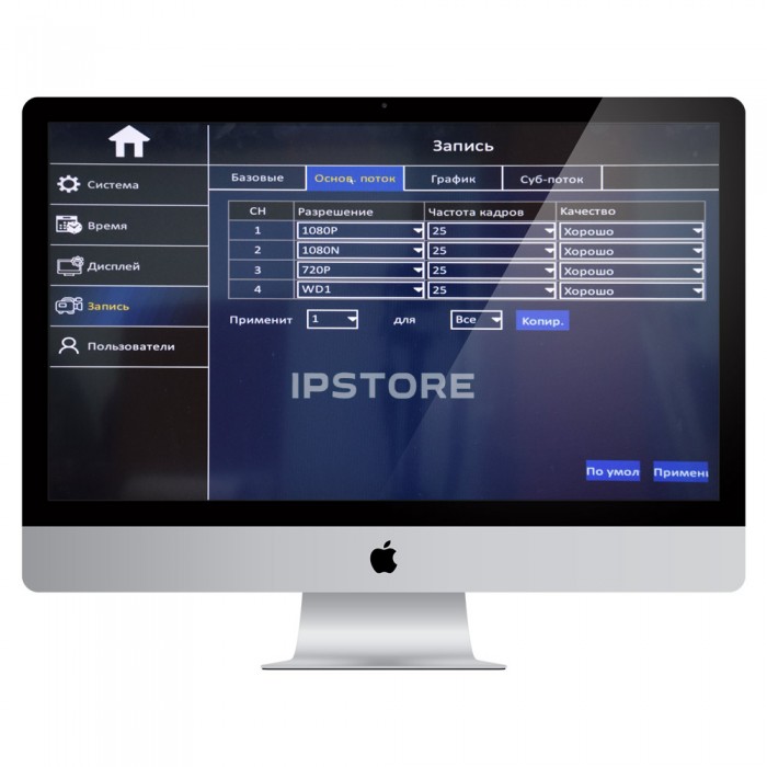 - для оптимизации архива доступны на выбор 8 предоставленных уровней качества видеоизображения (PAL / NTSC | 1080P, 720P, CIF, HD1, D1)