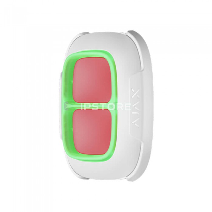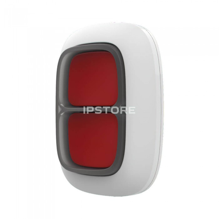 Ajax DoubleButton оснащена двумя тугими кнопками и пластиковой перегородкой для защиты от случайных нажатий. При нажатии передаёт сигнал тревоги пользователям, а также на пульт охранной организации. DoubleButton соответствует требованиям профессиональных европейских охранных стандартов и может использоваться как в частных, так и коммерческих объектах. Беспроводная связь с хабом и большая дальность коммуникации обеспечивают свободу в выборе места монтажа и позволяют перемещаться с DoubleButton по территории.