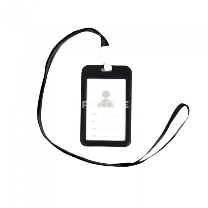 Бейдж на шнурку, вертикальний, колір чорний – ATIS, 111 x 69 x 5 мм