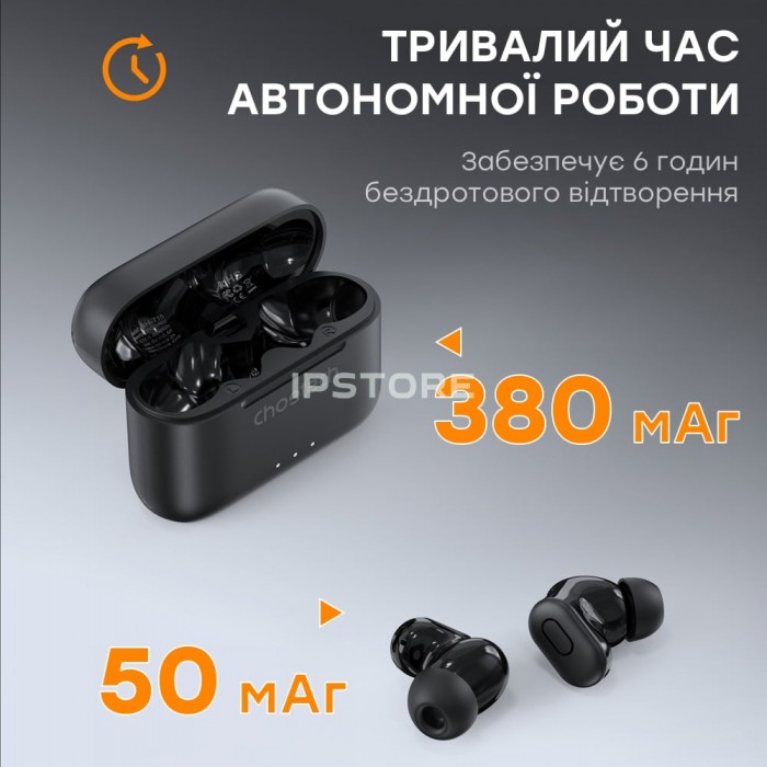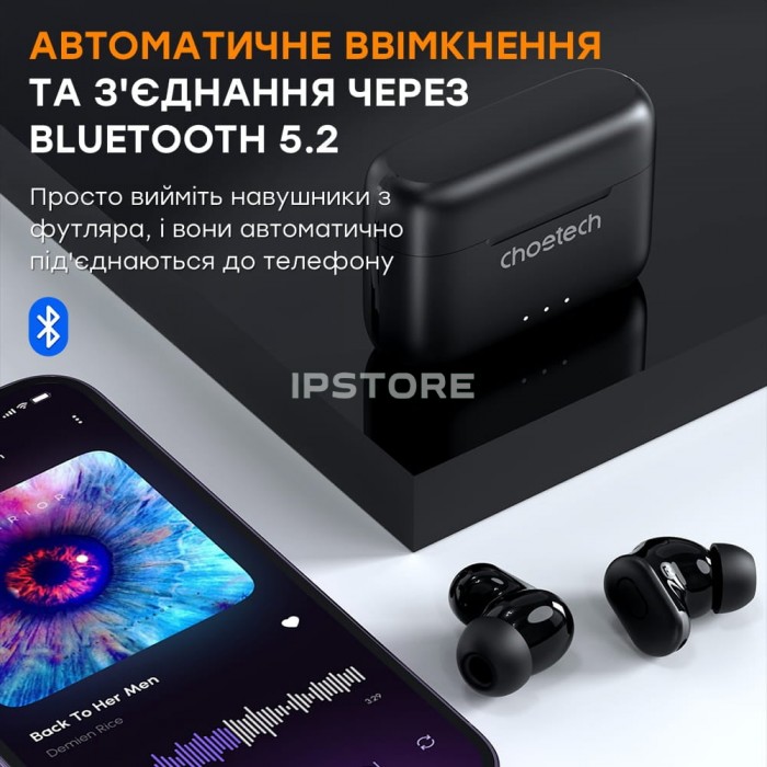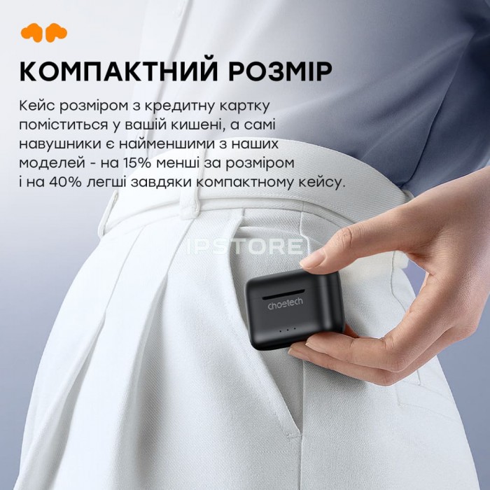 Бездротові навушники Choetech BH-T15 Black TWS, Bluetooth 5.2, ANC+ENC
