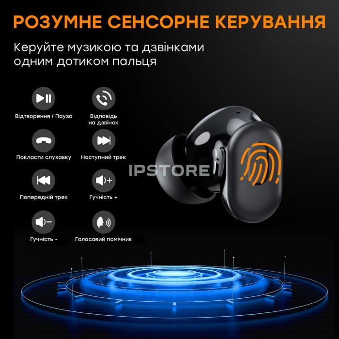 Бездротові навушники типу TWS з підтримкою Bluetooth 5.2; дальність відтворення звуку до 10 м; функції шумозаглушення ANC та ENC, глибина шумозаглушення 35-40 дБ; 4 вбудовані мікрофони; ємність акумуляторної батареї наву...