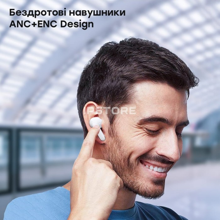 Бездротові навушники типу TWS із LED-дисплеєм, з підтримкою Bluetooth 5.3; дальність відтворення звуку до 12 м; функції шумозаглушення ANC та ENC; 4 вбудовані мікрофони; ємність акумуляторної батареї навушників 35 мА·рік, зарядного кейсу – 400 мА·рік; тривалість роботи на одному заряді до 6 годин для аудіо, до 3.5 годин для дзвінків, максимальна година роботи із зарядним кейсом до 36 годин; порт USB-C; година заряджання кейсу 1.5 години, навушників 1.5 години; у комплекті зарядний кейс, кабель USB Type-C, змінні амбушури