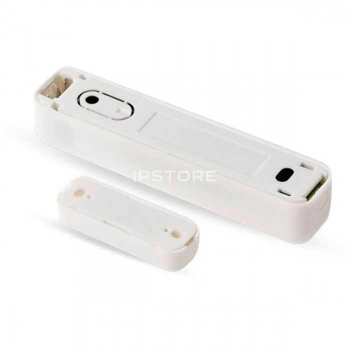 Бездротовий датчик відкриття дверей / вікна. Вбудований детектор вібрації і датчик температури, 1 дротова зона, 2 тампера. Частота бездротового зв'язку 868МГц, дальність передачі 30м (приміщення) / 150м (відкритий простір), живлення 2 батареї 1,5V Alkaline AAAA type, діапазон температур -20 ° С.. + 55 ° С, розміри датчика 101х22х20мм / магніту 47х17х10мм.