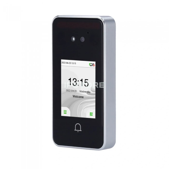 Біометричний термінал ZKTeco SpeedFace-V3L(Lite) [IP65] вологозахищений для обліку робочого часу та контролю доступу з функцією розпізнавання обличчя і зчитувачем EM-Marine з пам’яттю на 500 шаблонів облич, 3000 карт доступу, 200000 подій. Інтерфейс зв’язку – TCP/IP. Дальність розпізнавання обличчя до 1.2 м.