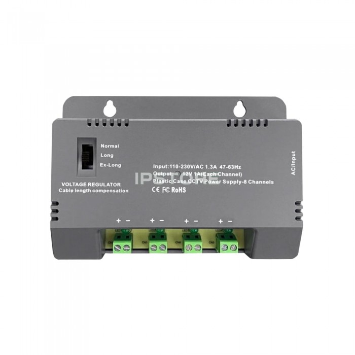 Импульсный блок питания на 4 канала погрузки; номинальное выходное напряжение 12 В; максимальный ток на канал 1 А; общая выходная мощность 60 Вт; входное напряжение/ток AC 110-230 В/1.3 А; световая индикация; защита от перегрузки по току, короткому замыканию и перенапряжению; пластиковый корпус; настенный монтаж; размеры 135/94/34 мм