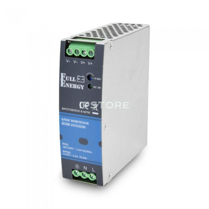 Блок живлення у металевому корпусі Full Energy BGM-243UDIN 24 В / 3.2 А для кріплення на DIN рейку, імпульсний.