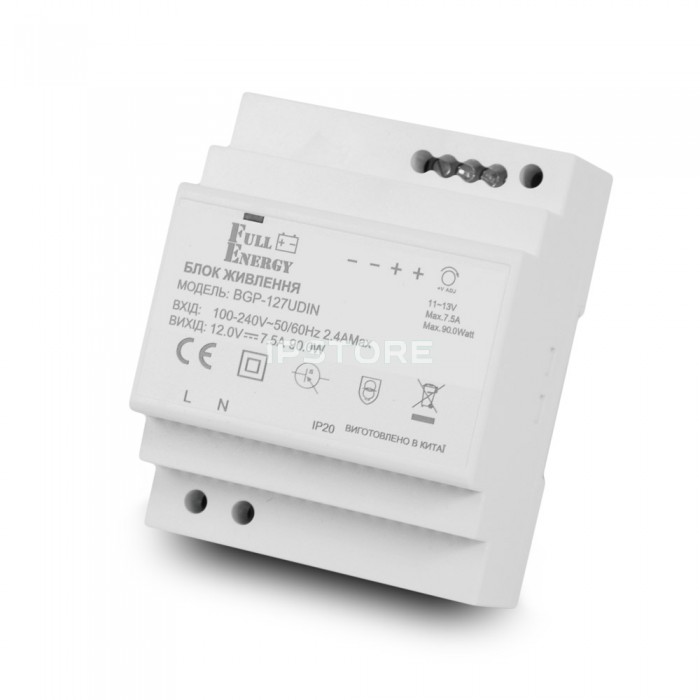 Блок живлення Full Energy BGP-127UDIN 12 В / 7.5 А для кріплення на DIN рейку, імпульсний.