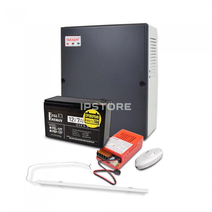 До складу комплекту входить:Бокс пластиковий Faraday Electronics PLB під акумулятори 7-9 А·годСвітильник LED лінійний 1200 мм 16 Вт 6500K Faraday ElectronicsБезперебійний блок живлення Faraday Electronics UPS 35W Smart ...