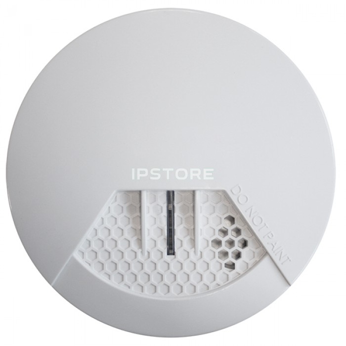 Бездротовий пожежний димовий сповіщувач. Двосторонній радіоканал 868 МГц. Дальність радіоканалу - 300 м у вільному просторі. Оптичний детектор диму. Чутливість 1,8-3.1%. Вбудований звуковий оповіщувач 85дБ / 3м. Розміри: 120мм (діаметр) х 5,3 мм (висота)