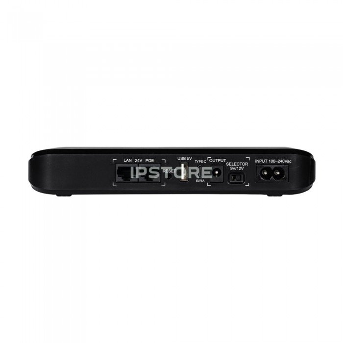 - Выходные интерфейсы USB, Type-C, DC, PoE, выходное напряжение 5 В (USB) + 5 В (Type-C) + 9/12 В (DC) – переключается + 24 В (PoE). Выходное напряжение и ток каждого выхода: USB: 5В/2А, Type-C: 5В/1А, DC: 9В/2А, 12В/1.5А, PoE: 24В/0.7А