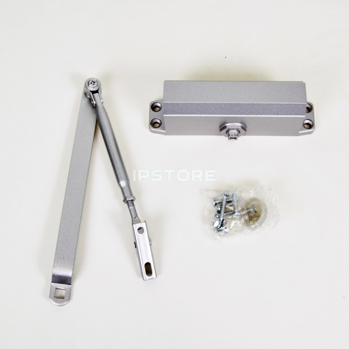Доводчик ATIS DC02, Стандартный рычаг, Заглушка на шпиндель, Крепежный комплект, Монтажная инструкция, Коробка