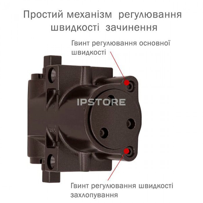 - Контроль скорости закрывания: обеспечивает плавное и безопасное движение створки.