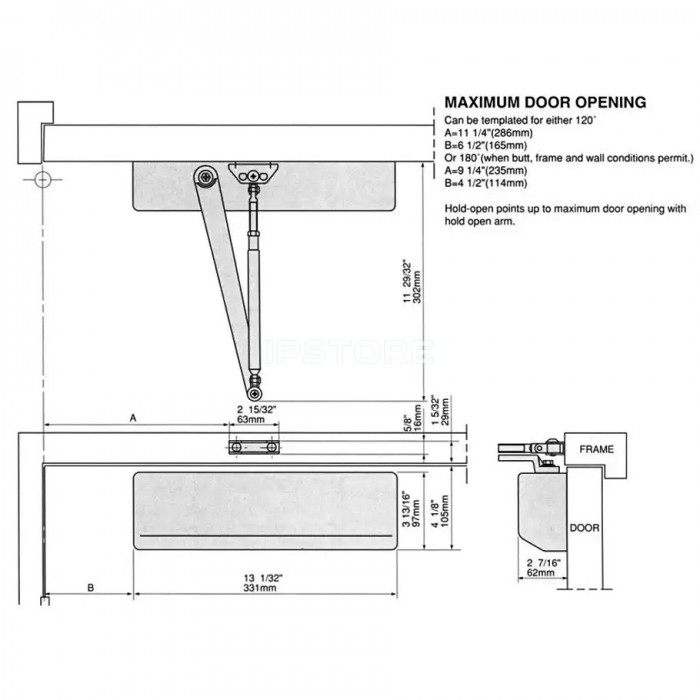 - Универсальность применения: подходит для внутренних, наружных и противопожарных дверей больших размеров.