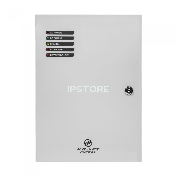 Блок безперебійного живлення імпульсний Kraft PSU-2450LED з LED-індикацією, у металевому боксі з місцем під дві акумуляторні батареї 12В/18 Аг, номінальні вихідна напруга/струм 24 В/5 А, вхідна напруга 190-265 В.Зас...