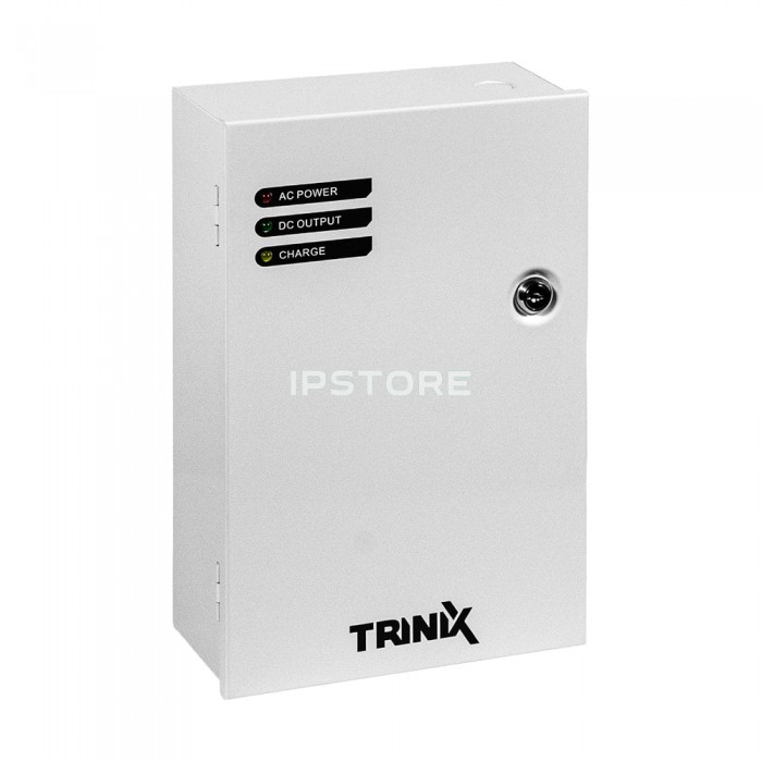 Блок безперебійного живлення імпульсний Trinix PSU-1210LED(M) LiFePO4 з LED-індикацією, у металевому боксі з місцем під акумуляторну батарею 12 В/18 А·год, номінальна вихідна напруга 13.8 В або 14.4 В – вибирається джампером, номінальний вихідний струм 10 А, максимальна вихідна потужність 172.8 Вт, вхідна напруга 190-265 В. Сумісний з літій-залізо-фосфатними (напругою до 14.4 В) та свинцево-кислотними (напругою до 13.8 В) акумуляторними батареями. ККД 88%.