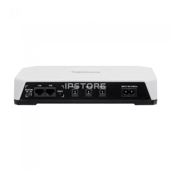 - Вихідні інтерфейси USB, DC *3, PoE, вихідна напруга 5 (USB/DC1) + 9 (DC2) + 12 (DC3) + 24/48 В - перемикається (PoE). Вихідна напруга та струм кожного виходу: USB/DC1: 5В/3А, DC2: 9В/3А, DC3: 12В/3А, PoE: 24В/1А, 48В/0.5А.