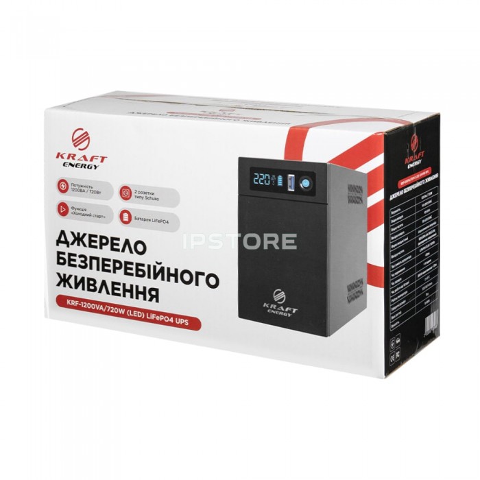 Теги: Kraft KRF-1200VA, LiFePO4 UPS, ДБЖ для котла, джерело безперебійного живлення, резервне живлення 720W