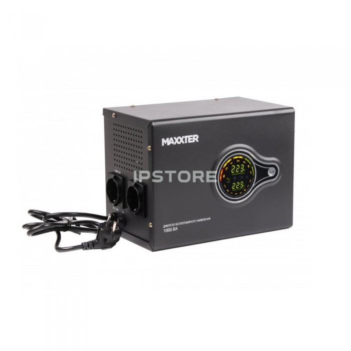 Джерело безперебійного живлення Maxxter MX-HI-PSW1000-01 це лінійно-інтерактивний інвертор потужністю 1000 В·А (600 Вт) із чистим синусоїдальним виходом. ДБЖ Maxxter призначено для забезпечення стабільної та безперебійної роботи опалювальних котлів, систем відеоспостереження, охоронних сигналізацій та інших важливих пристроїв у разі збоїв електропостачання. Підтримується під'єднання зовнішнього аккумулятора на 12В ємністю до 200А·год (купується окремо), що дає змогу використовувати ДБЖ як резервний джерело живлення. Вбудована мікропроцесорна система контролю за функцією самодіагностики забезпечує перевірку працездатності під час шкірного запуску, запобігаючи виникненню несправностей. Активне охолодження гарантує тривалу і безперебійну експлуатацію пристрою.