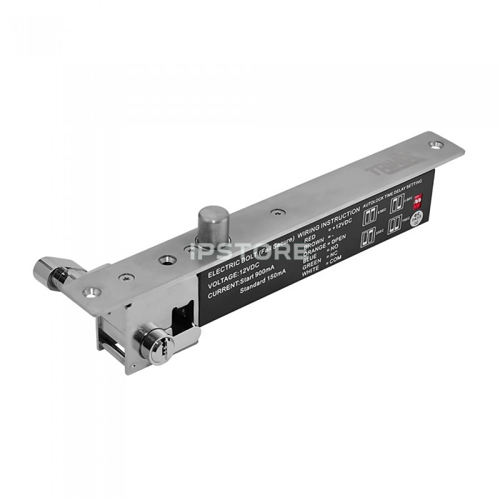 Trinix YB-600+ – врізна електроригельна защіпка, нормально-замкненого типу, з таймером затримки зачинення дверей 0/3/6/9 секунд та можливістю відімкнення механічним способом – ключем ззовні і поворотним механізмом зсередини.