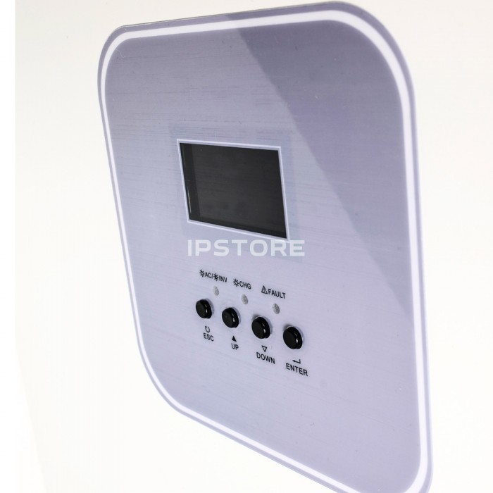 - Конфігурований пріоритет увімкнення живильної мережі змінного струму або живлення від фотоелектричних модулів за допомогою установки параметрів на панелі з рідкокристалічним дисплеєм