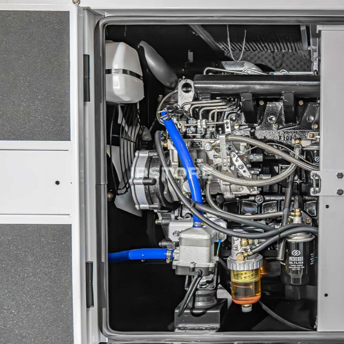 Генератор дизельний; номінальна потужність 60 кВт; максимальна потужність 75 кВА; трифазний; вихідна напруга 400 В; альтернатор з регулюванням напруги; тип запуску: електричний/автозапуск. Двигун: чотирициліндровий чотир...
