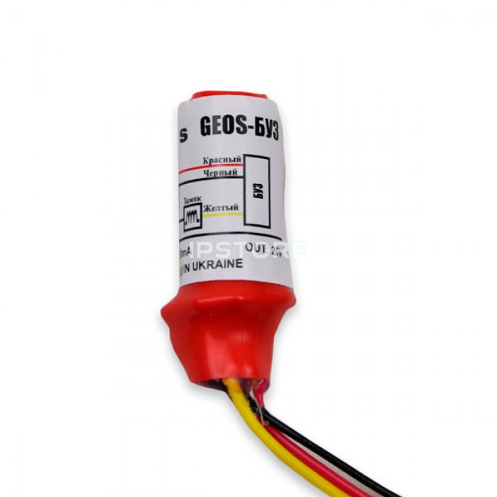 GEOS-БУЗ (блок управління замком) - малогабаритний пристрій, який накопичує напругу номіналом 12V від домофону і віддає короткий імпульс струму (до 3А), достатній для відкриття електромеханічного замку, без використання додаткового блоку живлення. Використовується при монтажі з домофоном.