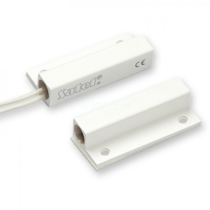 Магнітоконтактний Датчик відкриття (геркон) на дерев'яні та пластикові поверхні, накладний тип установки, пластиковий корпус, черговий режим - 10 мм, режим тривоги - 25 мм. Колір: білий. Датчик Satel K-1 застосовується як елемент охоронної сигналізації при спробі проникнення через двері і вікна. Підключається до будь-якого охоронного ППК або GSM-дозвонщику двома проводами. У разі спрацювання розмикає контакт. Не вимагає подачі живлення. Кріплення на самоклейку або саморізи.