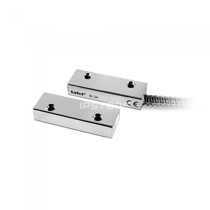 Магнітоконтактні сповіщувачі – це основний елемент охорони периметра. Середнього розміру герметичний магнітоконтактний сповіщувач B-3A в металевому корпусі призначений для поверхневого монтажу. Дроти з металевим обплетенням міцні, завдяки чому сповіщувач ідеально підійде для застосування в місцях, у яких пристрій може піддаватися ризику саботажу або механічного пошкодження. Датчик призначений для поверхневого монтажу. Він кріпиться до монтажної поверхні за допомогою саморізів.