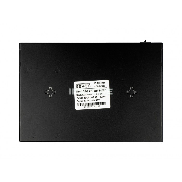 Особенности PoE свитча на 8 портов SEVEN P-7328FG-2SFP: РoЕ WatchDog AI коммутатор стандарта IEEE 802.3af/at 8 PoE портов 1000 Мбит/c + 2 Uplink порта 1000 Мбит/c + 2 SFP порта Выходная мощность 15W на PoE порт (максим...