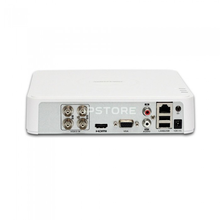 4 BNC-відеовходи, за допомогою яких підключаються 4 HD-TVI, 4 HDCVI, 4 AHD, 4 аналогових камер відеоспостереження і +1 IP-камера з роздільною здатністю до 6Mp;