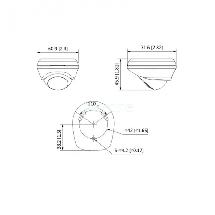 Технические характеристики видеокамеры DH-HAC-HDW3200LP (2.1 мм)
