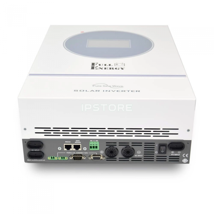 Вихідна форма сигналу Full Energy BBGI-6248MPW(TS) - чиста синусоїда, що забезпечує коректну роботу побутової та електронної техніки. Пристрій підтримує автоматичне перемикання між джерелами живлення, дозволяючи використовувати сонячну енергію в пріоритетному режимі та підключати мережу при нестачі генерації або для заряду акумуляторів.