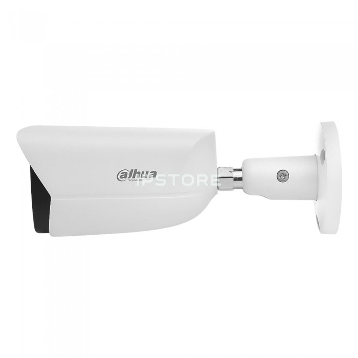 Цилиндрический корпус наружной камеры DH-IPC-HFW3841E-S-S2 (2.8 мм) выполнен из металла. Класс защиты: IP67 (система классификации степени защиты оболочки электрооборудования), что означает надежную защиту внутренних компонентов от пыли и влаги.