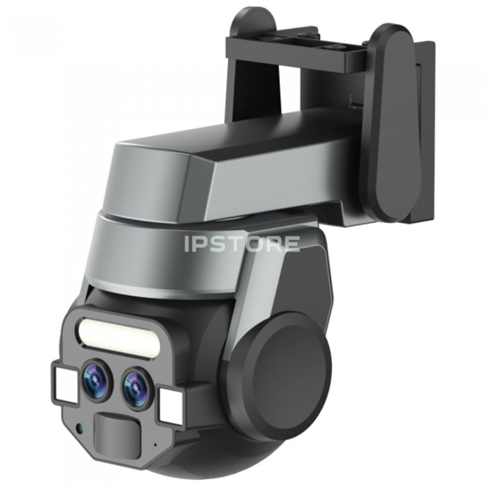 - Камера оснащена двойным фиксированным объективом с различными фокусными расстояниями (4 мм и 8 мм) для свободного переключения.