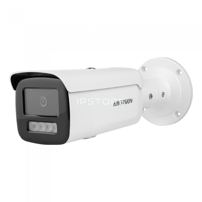 Вулична IP-відеокамера DS-2CD2T43G2-4LI (2.8 мм)з роздільною здатністю 4 Мп подвійним підсвічуванням для системи IP-відеоспостереження. Фіксований об'єктив з фокусною відстанню 2.8 мм і кутом огляду по горизонталі 104°.