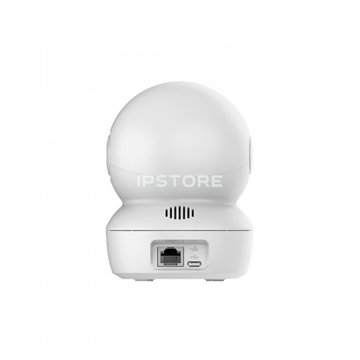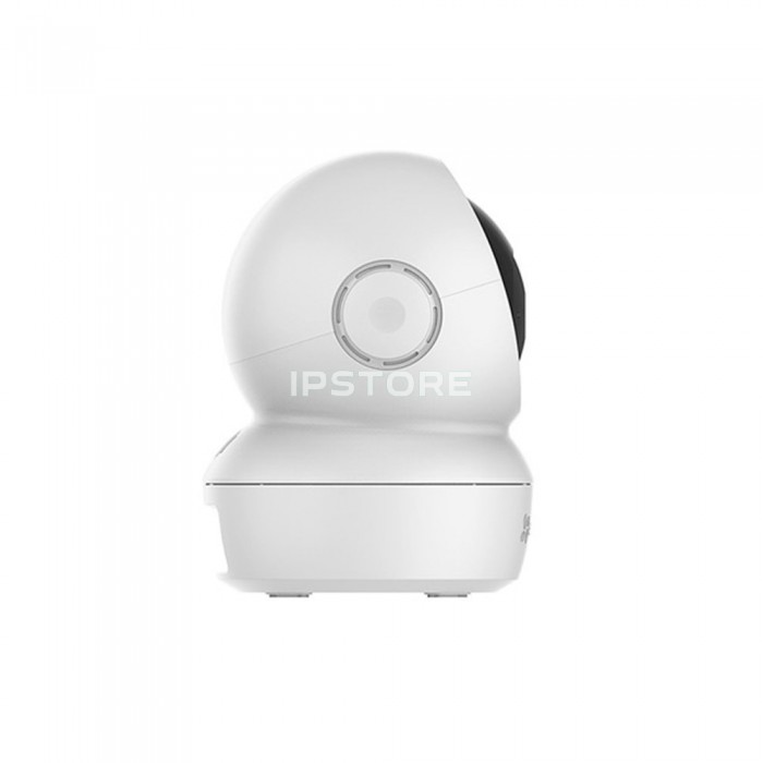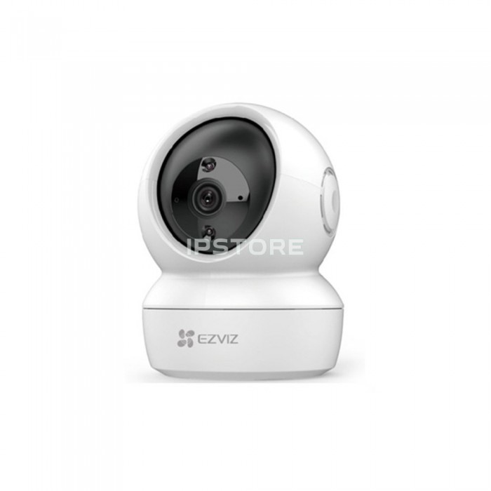 Внутрішня поворотна IP-камера EZVIZ CS-H6c (1080P) з Wi-Fi, роздільною здатністю відео 2 Мп, ІЧ-підсвічуванням, функцією автотрекінгу і підтримкою карт пам'яті microSD до 256 ГБ, з вбудованим мікрофоном і динаміком. Керування камерою здійснюється за допомогою застосунку для мобільного телефону (iOS | Android). Підключення пристрою до мережі інтернет через Wi-Fi або RJ45.