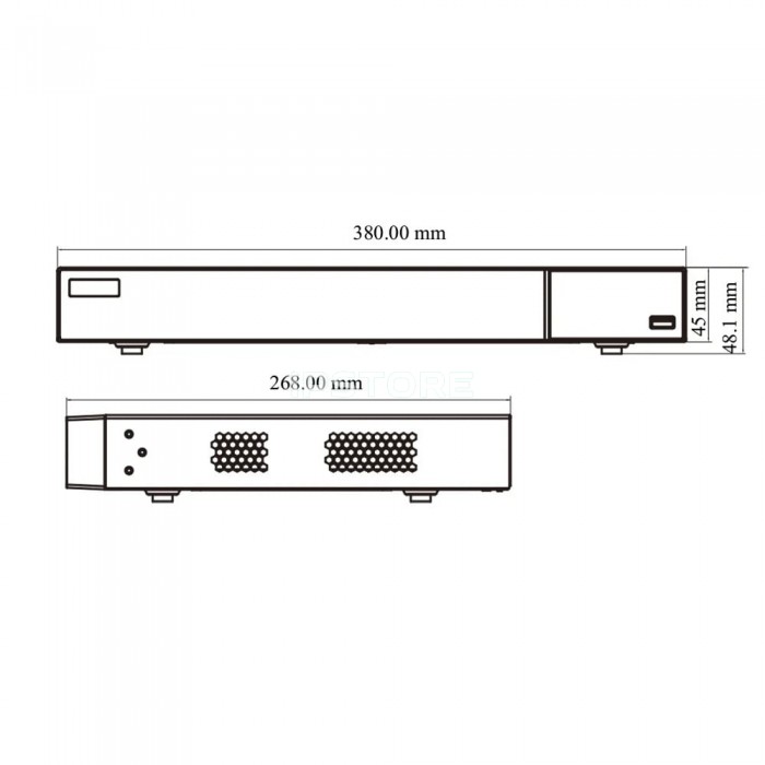 16-канальний мережевий відеореєстратор з підтримкою інтелектуальної відеоаналітики, з максимальною роздільною здатністю 16MP; відеокодек H.265+, H.265S, H.265, H.264; запис: 16MP / 12MP / 8MP / 6MP / 5MP / 4MP / 3MP / 1080P / 960P / 720P @ 25fps; вхідний/вихідний потоки 192Mbps/192Mbps; відеовихід: HDMI (4K), VGA (Full HD); аудіо: вхід RCA x1 / вихід RCA x1; тривожні: входи 8/виходи 4; база даних облич: 32 бібліотеки/10000 фото облич, порівняння облич: 18 зображень/сек; перегляд архіву камер: локально/мережею 16/16; мережа: RJ45 1000Mbps x2, USB 2.0 x2, USB 3.0 x1, HDD: SATA x2 до 10 ТБ; живлення DC 12V/4А; розміри 380 / 268 / 48.1 мм