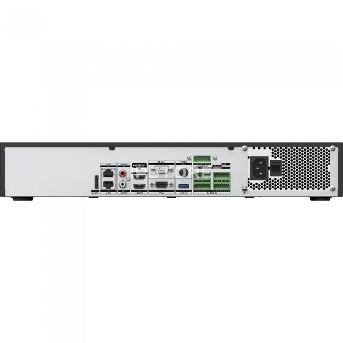 IP-відеореєстратор (NVR) розрахований для підключення до 32-х IP-камер відеоспостереження з високою роздільною здатністю. Запис відеоархіву ведеться на чотири HDD SATA 3.5" ємністю до 20 ТБ (треба купувати окремо). Стандарт компресії відео H.265+ / H.265 / H.264+ / H.264.